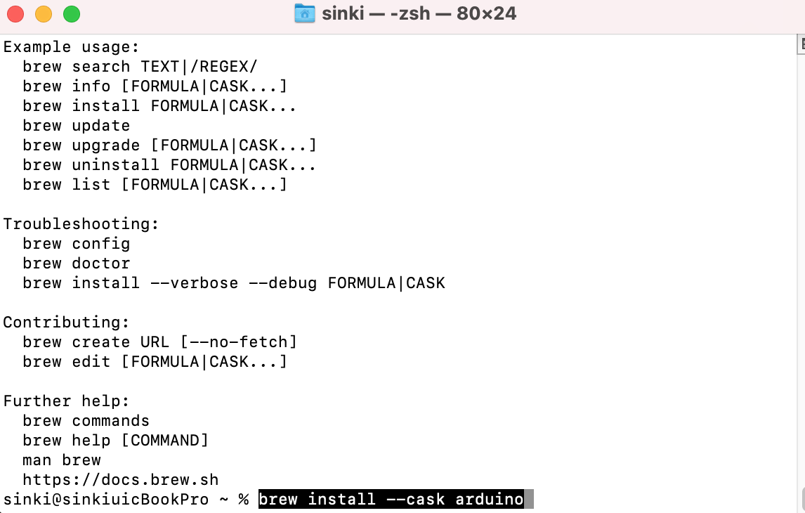 Install commant: $ brew install --cask arduino 뒤의 클립보드를 클릭한다.