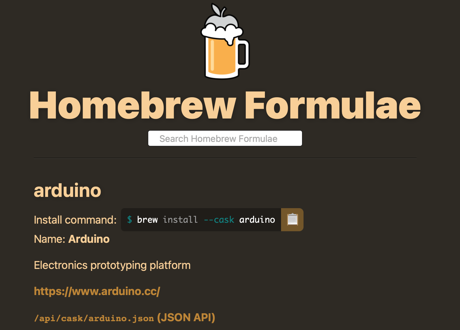 우선 구글에서 brew arduino를 검색하고 처음 나오는 formulas.brew.sh로 들어가 보면