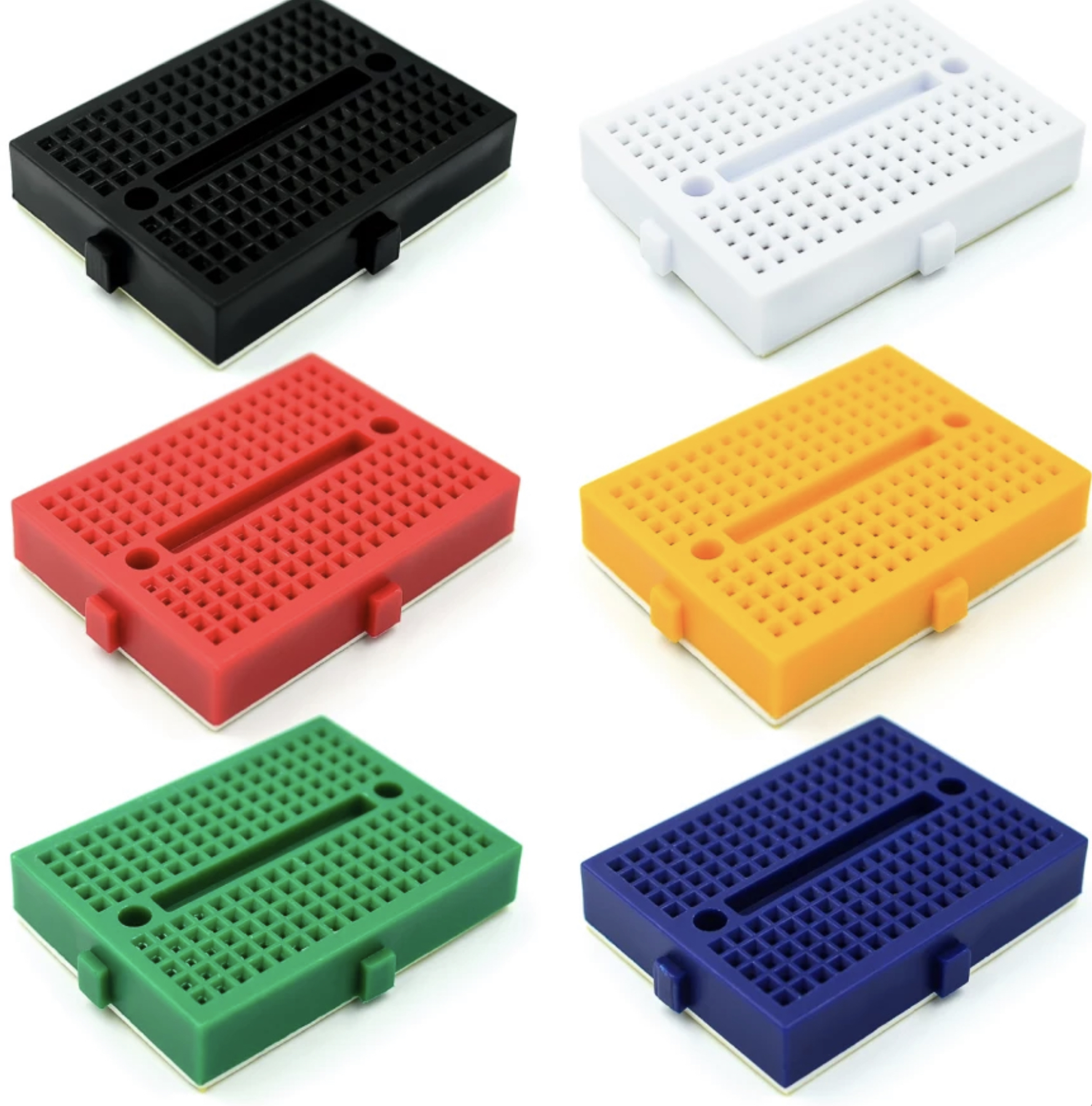 브레드보드는 1960대 회로를 만든던 wire-wrap(절연기판에 부품을 장착하고 부품 단자를 절연전선으로 연결하는 방법)에서 유래되었습니다. 이때 사용하던 절연기판이 브레드보드(빵을 자르던 나무 도마)라서 현재에도 브레드보드라고 합니다.